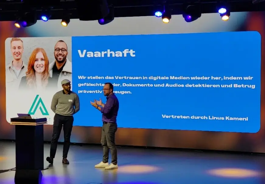 Toller Erfolg für Vaarhaft. Beim Gründerpreis, der zum 19. Mal von den Wirtschaftsjunioren der Handelskammer Hamburg verliehen wurde, darf sich das Startup über den zweiten Platz freuen. Der Gründerpreis ist mit einem Preisgeld von insgesamt 20.000+ Euro und Coachings dotiert. Vaarhaft hat eine Software entwickelt, die gefälschte Fotos und Videos innerhalb weniger Sekunden erkennt. Das ist insbesondere in Zeiten von KI, mit der sich mühelos täuschend echte Fotos und Videos erstellen lassen, wichtig.